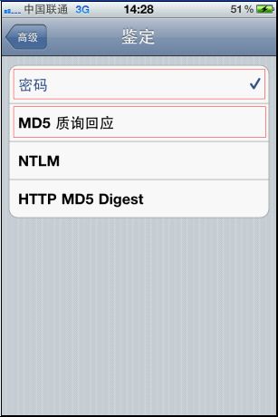 八、iPhone雖然默認(rèn)的鑒定方式是“密碼”,但是實(shí)際上系統(tǒng)中使用apop方式,所以一般用戶設(shè)定好以后無法使用,可以先改變一種鑒定方式(如MD5等)并確定,再選回“密碼”方式,此時(shí)的iPhone就可以正常使用了。
