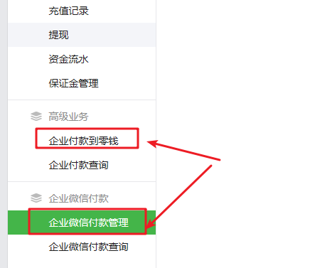 開通后,就可以使用【企業(yè)付款到零錢】與【企業(yè)微信付款管理】2種方式轉(zhuǎn)賬到個人微信錢包,如下圖所示: