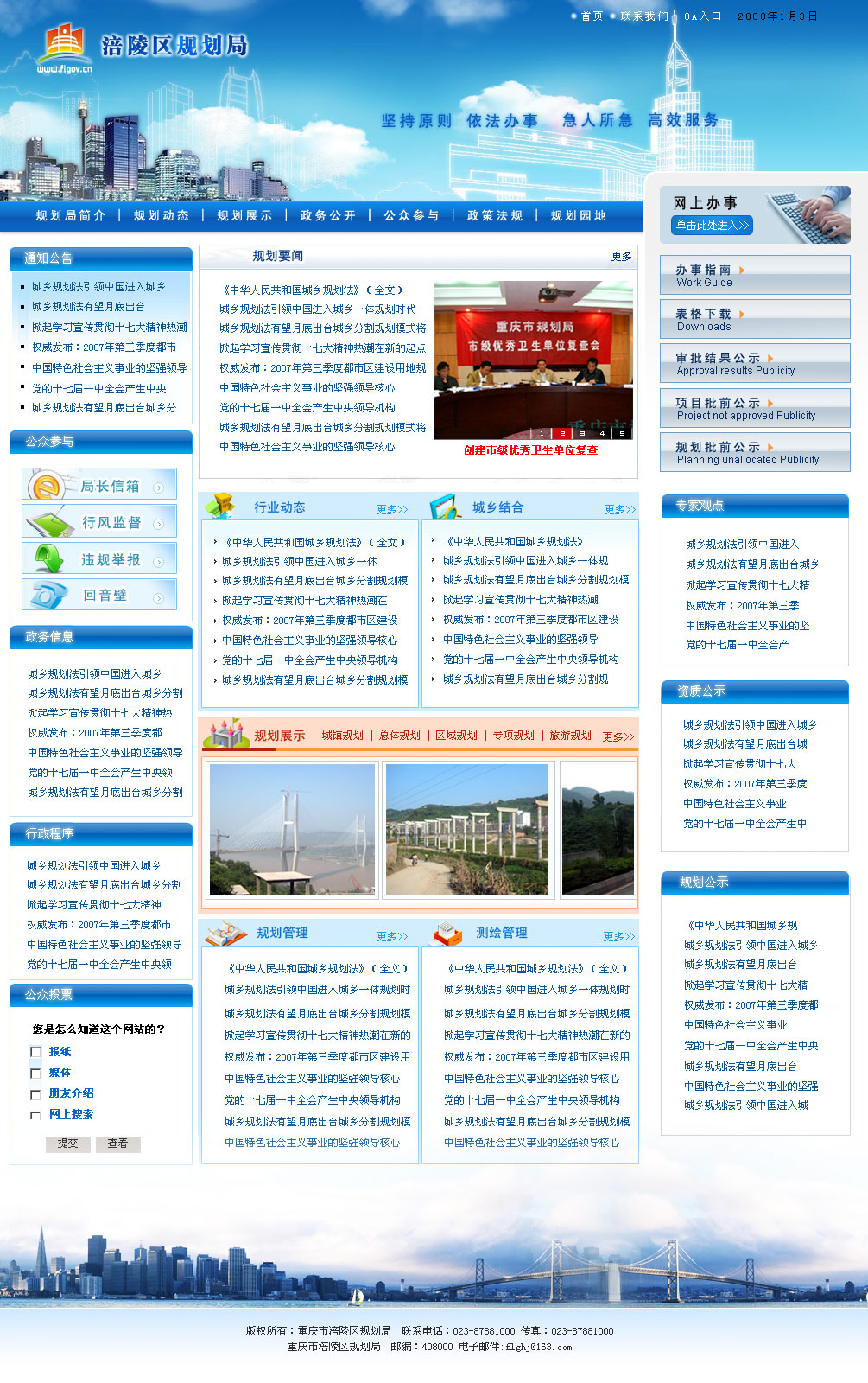 貫徹執(zhí)行國家、重慶市有關(guān)城鄉(xiāng)規(guī)劃、測繪的法律、法規(guī)、規(guī)章和方針政策;負(fù)責(zé)制定和草擬全區(qū)城鄉(xiāng)規(guī)劃、測繪管理的規(guī)范性文件并組織實(shí)施。 承辦區(qū)規(guī)劃委員會的日常工作。 組織編制、修編涪陵城市總體規(guī)劃(包括區(qū)域城鎮(zhèn)體系規(guī)劃、近期建設(shè)規(guī)劃)、分區(qū)規(guī)劃、詳細(xì)規(guī)劃,并依法實(shí)施規(guī)劃管理;按有關(guān)法規(guī)規(guī)定組織或參與編制、審查區(qū)級以上風(fēng)景名勝區(qū)、自然保護(hù)區(qū)、森林公園、歷史文化保護(hù)區(qū)、旅游景區(qū)規(guī)劃及相關(guān)專業(yè)規(guī)劃;指導(dǎo)各鄉(xiāng)鎮(zhèn)城鎮(zhèn)規(guī)劃、鄉(xiāng)村規(guī)劃、詳細(xì)規(guī)劃的編制和規(guī)劃建設(shè)的實(shí)施管理。 主管全區(qū)城鄉(xiāng)規(guī)劃管理工作。負(fù)責(zé)城鄉(xiāng)建設(shè)項(xiàng)目的規(guī)劃選址和建設(shè)用地、建設(shè)工程的規(guī)劃審批管理和工程竣工規(guī)劃驗(yàn)收;核發(fā)《建設(shè)工程選址意見書》、《建設(shè)用地規(guī)劃許可證》、《建設(shè)工程規(guī)劃許可證》、《建設(shè)工程規(guī)劃驗(yàn)收合格證》(簡稱“一書三證”,以下同);負(fù)責(zé)城市規(guī)劃區(qū)內(nèi)的城市小品(包括城市雕塑)的選址定點(diǎn)。負(fù)責(zé)管理規(guī)劃方案設(shè)計(jì)招標(biāo)。 主管全區(qū)測繪工作。負(fù)責(zé)本區(qū)相對獨(dú)立坐標(biāo)系統(tǒng)的審查和報(bào)批;負(fù)責(zé)本區(qū)地圖和各種專題地圖的審批和監(jiān)制;依照《重慶市測繪管理?xiàng)l例》的規(guī)定負(fù)責(zé)測量標(biāo)志、地籍測繪、行政區(qū)域界線測繪的管理;負(fù)責(zé)全區(qū)測繪成果管理。 主管全區(qū)規(guī)劃和測繪行業(yè)管理。制定行業(yè)發(fā)展規(guī)劃,管理規(guī)劃設(shè)計(jì)和測繪市場;負(fù)責(zé)城鄉(xiāng)規(guī)劃設(shè)計(jì)、測繪單位資質(zhì)管理工作,負(fù)責(zé)對進(jìn)入本區(qū)城鄉(xiāng)規(guī)劃、測繪市場的單位備案登記;定全區(qū)基礎(chǔ)測繪規(guī)劃與年度計(jì)劃,并組織實(shí)施管理。負(fù)責(zé)組織全區(qū)規(guī)劃、測繪人員業(yè)務(wù)培訓(xùn)。 負(fù)責(zé)全區(qū)城鄉(xiāng)規(guī)劃、測繪的監(jiān)察工作。負(fù)責(zé)城鄉(xiāng)規(guī)劃實(shí)施行為的監(jiān)督檢查,查處違反城鄉(xiāng)規(guī)劃和測繪法律、法規(guī)的行為;依法進(jìn)行行政應(yīng)訴;對城鄉(xiāng)規(guī)劃和測繪管理行政行為實(shí)施監(jiān)督檢查。 主管全區(qū)規(guī)劃和測繪的信息、科技、檔案工作。負(fù)責(zé)城鄉(xiāng)規(guī)劃和測繪成果檔案管理;負(fù)責(zé)建立和完善全區(qū)基礎(chǔ)地理信息系統(tǒng),管理基礎(chǔ)地理信息數(shù)據(jù)。 主管全區(qū)規(guī)劃和測繪的科技工作。組織編制城鄉(xiāng)規(guī)劃、測繪科技發(fā)展規(guī)劃;指導(dǎo)、協(xié)調(diào)城鄉(xiāng)規(guī)劃和測繪的科研、科技交流以及高新技術(shù)推廣應(yīng)用工作。 參與江河流域規(guī)劃、區(qū)域規(guī)劃、土地利用總體規(guī)劃編制;參與全區(qū)社會經(jīng)濟(jì)發(fā)展規(guī)劃和建設(shè)計(jì)劃的制定;參與建設(shè)用地計(jì)劃和土地劃撥、出讓、轉(zhuǎn)讓方案的制定;參與建設(shè)項(xiàng)目初步設(shè)計(jì)審查和重要建設(shè)項(xiàng)目可行性研究;參與重大廣告設(shè)施、城市雕塑的方案審查;參與與城市規(guī)劃有關(guān)的禁建、控建、慎建區(qū)的劃定。 負(fù)責(zé)本機(jī)關(guān)和所屬事業(yè)單位的機(jī)構(gòu)編制、人事人才管理工作;負(fù)責(zé)局系統(tǒng)精神文明建設(shè)和行風(fēng)建設(shè)。 承辦區(qū)委、區(qū)政府交辦的其他事項(xiàng)。 重慶涪陵規(guī)劃局網(wǎng)站地址http://www.flgh.gov.cn/ |